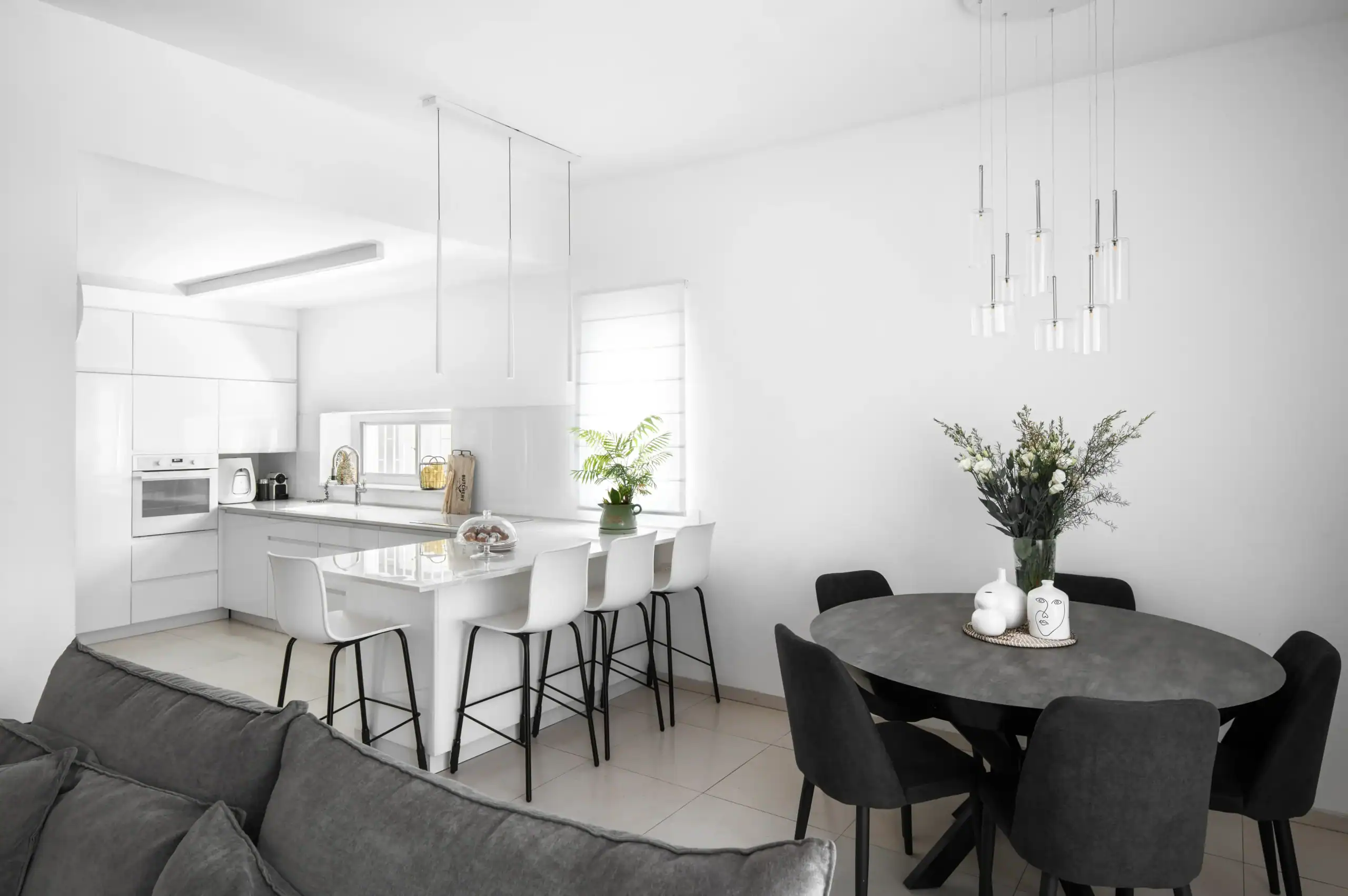 כולל תכניות נגרות, גבס, הורדת מטבח לייצור כולל בחירת חומרי גמר כגון- תאורה, שיש, רהיטים.